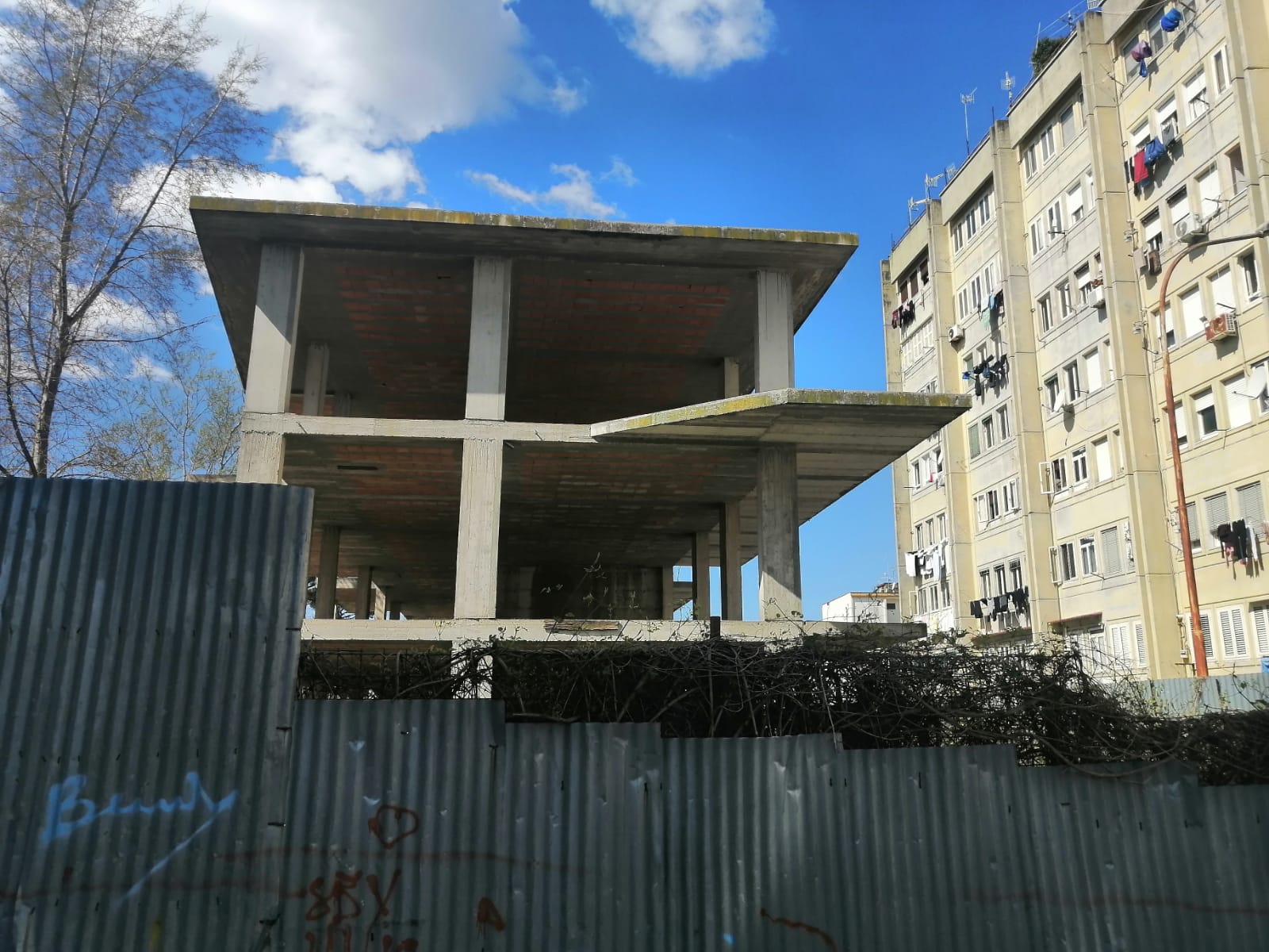 Anche i palazzi sono consumati dal tempo e dall’incuria, tanto che i sostegni di ferro fuoriescono dai pilastri. In quest’anfratto periferico a Nord di Napoli i giorni degli appartenenti dei quasi 150 nuclei familiari dimoranti – ai legittimi assegnatari di appartamenti si aggiungono quelli che sono in attesa o dovrebbero regolarizzare la propria posizione – trascorrono uguali sotto l’insegna dell’oblio sociale. Mancano gli interventi manutentivi effettuato dalla società Napoli Servizi mentre si attende il nuovo avvio dei lavori del lotto 1 relativo alla costruzione di 126 nuovi alloggi grazie all’utilizzo di un finanziamento da 7,8 milioni di euro così ripartiti: 7,2 milioni attinti dal Pon Metro 2014-2020 e altri 411.000 euro grazie al Poc Metro 2014-2020. Il termine per partecipare al bando di gara per l’affidamento del lotto 1 è scaduto a inizio marzo.