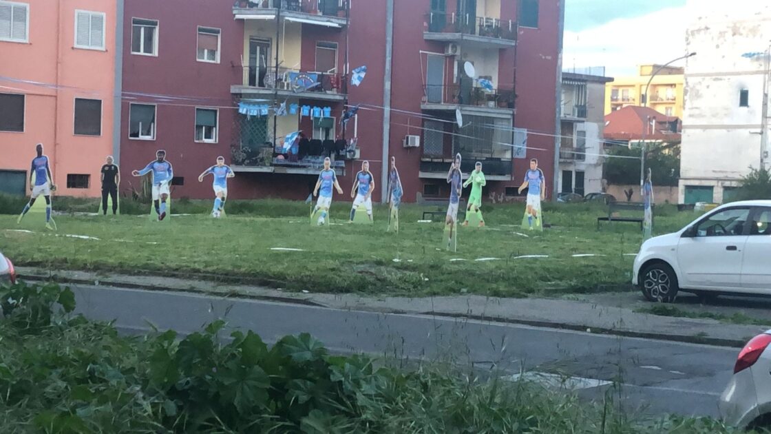 Particolare è quella nata, nelle ultime ore, nelle Palazzine di Giugliano, in via Rosa Agazzi, dove sono spuntati i cartonati dell’intera squadra azzurra, con l’allenatore Luciano Spalletti e, fatto curioso, anche dello storico magazziniere Tommaso Starace e della giornalista e conduttrice di DAZN Diletta Leotta. L’iniziativa è stata organizzata da un comitato di residenti all’interno delle Palazzine, che sono sicuri che il luogo diventerà, nei prossimi giorni, una grande attrattiva e sentendosi in dovere di addobbare a festa tutte le strade e le piazze della città per celebrare una vittoria che non sarà limitata al campo da calcio, ma che sarà vista come un simbolo di riscatto per i cittadini napoletani e del Sud Italia.