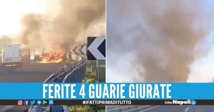 Hanno sparato contro le guardie giurate, colpendo una di loro a una gamba. Altre tre sono rimaste ferite, uno con contusioni alla testa, gli altri due vigilantes al torace in seguito a tamponamento. I feriti sono stati soccorsi dal 118 e trasportati uno all’ospedale di Ozieri e tre a Sassari. I banditi sono scappati in direzione di Mores a bordo di un pick-up e di un’auto che sono stati trovati poco dopo bruciati in una strada secondaria.