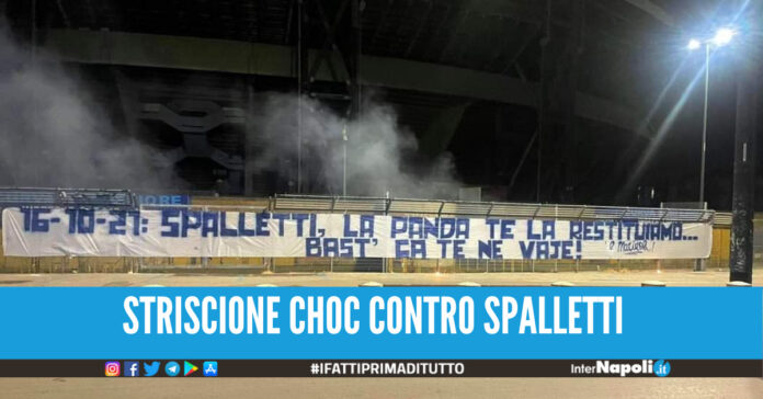 I tifosi del Napoli scaricano Luciano Spalletti. Questa sera, all’esterno dello Stadio Diego Armando Maradona, è apparso uno striscione grottesco contro l’allenatore azzurro: “Spalletti, la panda te la restituiamo… bast’ ca tene vaje!”. Il riferimento è al furto dell’autovettura di Spalletti avvenuto all’esterno dell’Hotel Britannique lo scorso ottobre.