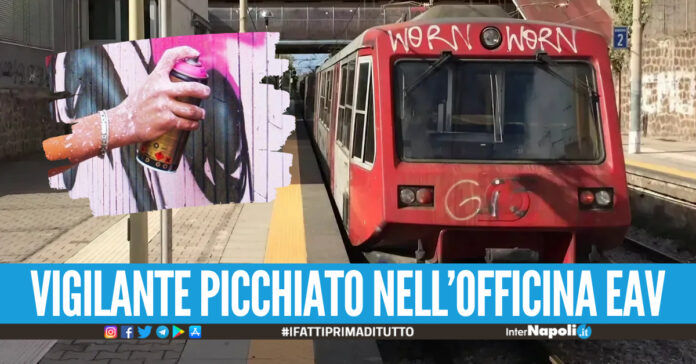 Violenza questa notte a Quarto, presso l’officina EAV, dove una guardia giurata è stata aggredita da alcuni writers intenti a graffittare i treni. A denunciare l’accaduto è stata proprio l’Ente Autonomo Volturno con un post pubblicato sulla pagina Facebook dell’ufficio stampa.