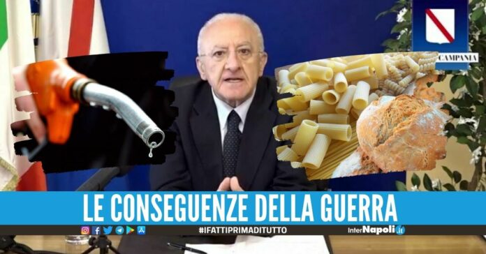 “Benzina, pasta e pane aumenteranno ancora”, l’allerta di Vincenzo De Luca sugli effetti della guerra in Ucraina. Nella consueta diretta del venerdì pomeriggio il presidente della Campania ha affrontato vari temi di attualità come l’accoglienza dei profughi dall’Ucraina, il coronavirus e la situazione sanitaria regionale.