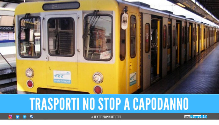 La linea 1 della metropolitana, gestita dall’Anm società in capo al Comune di Napoli, viaggerà no stop nella notte tra il 31 dicembre 2023 e il 1 gennaio 2024, con una frequenza di corse ogni 10 minuti, i parcheggi di interscambio attivi senza interruzioni e un potenziamento dei servizi di vigilanza. Il servizio, poi, si interromperà tra le 13.30 (ultima corsa da Piscinola 12.30, da Garibaldi 12.50) e le 16.30 del 1 gennaio (prima partenza da Piscinola alle 16.50, da Garibaldi alle 17.30) Anche la Funicolare Centrale sarà aperta tutta la notte mentre quella di Mergellina e di Montesanto chiuderanno alle 13 del 1 gennaio per poi riaprire tra le 16.30 e le 22.30.