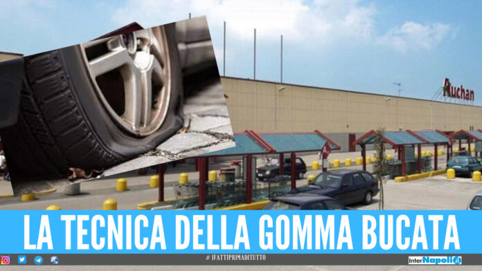 “Dopo aver parcheggiato la mia Fiat Panda nel settore A2, entro per acquisti e ne esco dopo circa una trentina di minuti; nel riavvicinarmi alla mia autovettura noto, con rammarico, che la ruota anteriore era bucata. Non sapendo a chi rivolgermi mi reco al distributore, all’interno del Centro, per la riparazione ma, forse per l’orario o per altre ragioni a me sconosciute, il personale era assente; quindi decido di provvedere da solo e vado sul retro del distributore stesso.
