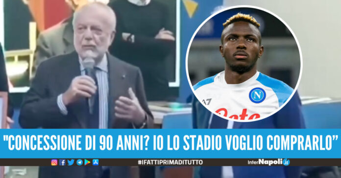 Sullo stadio: “Concessione di 90 anni? Io lo stadio voglio comprarlo, con l’impegno a investire quei milioni necessari per fare gli Sky box, per portare il pubblico accanto ai giocatori come negli stadi veri, tutto questo. Sento dire ‘Lui ha presentato un progetto che però è stato rigettato’. Ma non è vero: io ho presentato un progetto che è stato ‘non studiato’. È stato detto da uno che voleva fare il Masaniello che lo stadio deve essere un fatto popolare, e che dovrebbe essere fatto da 55-60mila. Quando loro dicono che lo stadio deve essere a disposizione del popolo, allora io dico che andrebbe fatto l’azionariato pubblico. Perché quando io devo tirare fuori poi 70 milioni per Osimhen, chi li tira fuori?”.