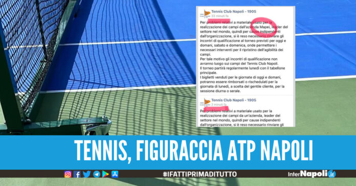 La festa del week-end si è trasformata così in incubo per gli organizzatori, con tante ipotesi sul mal funzionamento dei campi, a partire dalla pioggia caduta giovedì, una normale pioggia autunnale, non certo una tempesta, ma che alla fine viene imputato a chi ha costruito i campi ricoprendo (male) la tradizionale terra rossa del circolo e anche il campo del lungomare di Napoli, con la Rotonda Diaz occupata dall’enorme Arena da 4000 posti, costruita ma al momento inutilizzabile visto che il campo non funziona neanche lì. “Il rinvio e lo spostamento – si legge nel tardo pomeriggio in un comunicato – si sono resi necessari per consentire il ripristino dei campi da gioco del Tennis Club Napoli, sia quelli all’interno del circolo che quello nell’Arena allestita alla Rotonda Diaz, attualmente impraticabili per motivi tecnici imprevedibili, non dipesi dall’organizzazione e causati dalla composizione dei campi”.