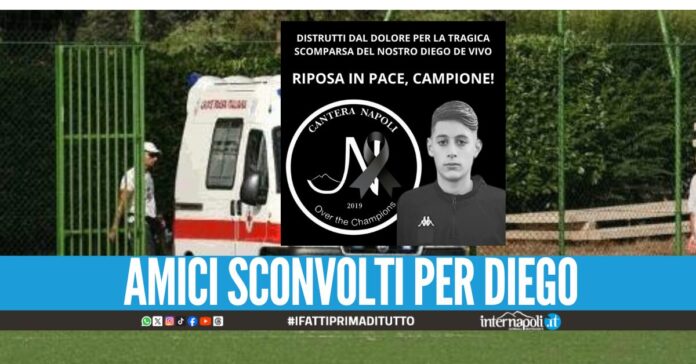Ieri sera, i carabinieri del nucleo operativo e pmz di Napoli Stella sono intervenuti in nella scuola calcio La Cantera Napoli, in strada comunale Selva Cafaro. Un 14enne, Diego De Vivo,prima dell’inizio di un allenamento, è stato colto da un malore ed è morto. La alma è a disposizione dell’autorità giudiziaria per l’esame autoptico. La scuola calcio ha scritto un post di cordoglio;”UNA TRAGEDIA HA COLPITO L’INTERA FAMIGLIA CANTERA NAPOLI, SIAMO SOTTO SHOCK, SONO IMMEDIATAMENTE SOSPESE TUTTE LE ATTIVITÀ”.