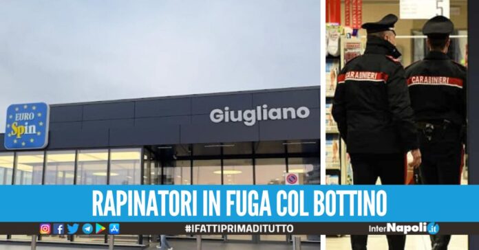 Raid armato a Giugliano nella serata di sabato. Due malviventi a volto coperto hanno preso d’assalto l’Eurospin di via Pigna a Casacelle. I rapinatori, giunti sul posto in sella ad uno scooter, si sono introdotti nel supermercato poco prima dell’orario di chiusura. Pistola in pugno, hanno intimato alle cassiere di consegnare l’incasso. Il tutto, sotto gli occhi terrorizzati dei clienti. Pochi secondi che sono sembrati un’eternità.