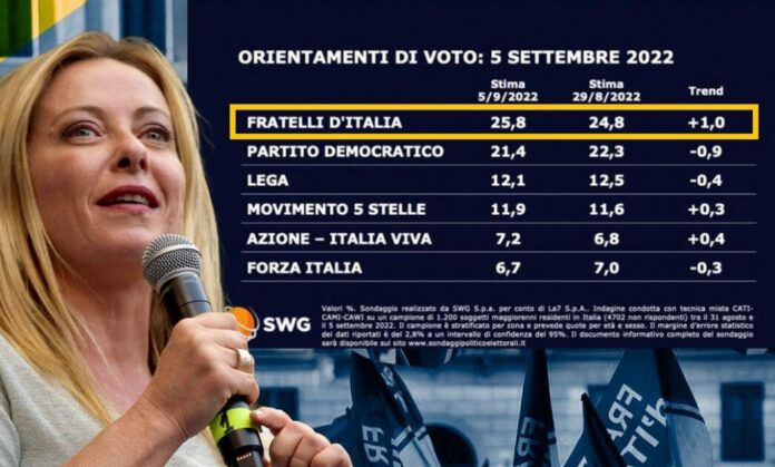 Elezioni 2022, Fratelli d’Italia è sempre il primo partito nei sondaggi