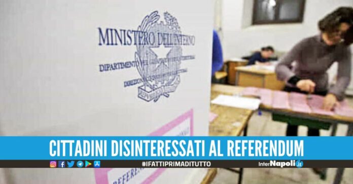 Oggi la partecipazione popolare per i referendum è molto bassa. Alle 15.45 registrata in Campania un’affluenza alle urne del 5.08%: Napoli, con 92 province, rileva quella più bassa, ridotta al 4.64%. Seguono i 78 comuni della provincia di Benevento con il 4.75%; Caserta, con 104 comuni, si assesta al 5%; Avellino ha una presenza alle urne del 5.52%, con i suoi 118 comuni; infine, Salerno, che ha 158 comuni, registra il 6.25%. L’affluenza nazionale sul referendum è del 6.63%.
