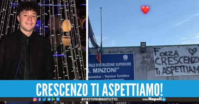 Primi segnali di ripresa da parte di Crescenzo D’Alterio, il giovane coinvolto in un grave incidente. ” Ragazzi Buonasera questo è il bollettino medico di adesso Crescenzo sta iniziando a rispondere ai comandi grazie a Dio. Vi raccomando facciamo tantissime preghiere solamente per Crescenzo. Crescenzo ti stiamo aspettando tutti Amici, Parenti, Compagni di scuola i tuoi Genitori”, scrivono gli amici sul web. Intanto la sua scuola, l’istituto Minzoni di Giugliano, ha esposto uno striscione “Crescenzo ti aspettiamo”.