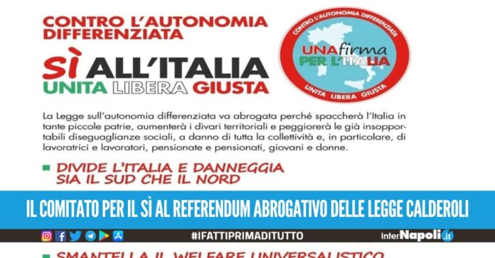 Contro la legge spaccaitalia parte a Giugliano e nell’area a nord di Napoli parte la raccolta firme a sostegno del Referendum Abrogativo. In contemporanea con tutto il paese parte a Giugliano e nei comuni dell’area Giuglianese a Nord di Napoli la campagna referendaria per l’abrogazione della legge sull’autonomia differenziata.