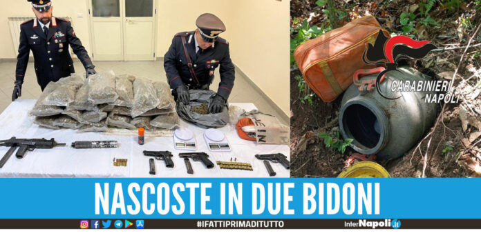 Anche un mitragliatore e 18 chili di droga nel sequestro dei Carabinieri. Tutto nascosto sotto terra tra la vegetazione dei Monti Lattari nella zona di Gragnano. Un arsenale per uccidere e droga in abbondanza per assecondare la domanda commerciale di centinaia di clienti. Tutto interrato in due bidoni di plastica, all’ombra della vegetazione dei Monti Lattari. Un luogo inospitale, quasi impossibile da individuare. Non per i Carabinieri della stazione di Gragnano che monitorano costantemente anche quel versante della montagna. Tutte le strade sono battute, soprattutto quelle più difficili, in una ricerca che sembrerebbe quella di un ago in un pagliaio. Impegno ed esperienza, tuttavia, premiano e i militari hanno sottratto ancora una volta strumenti di morte dalle mani della criminalità.