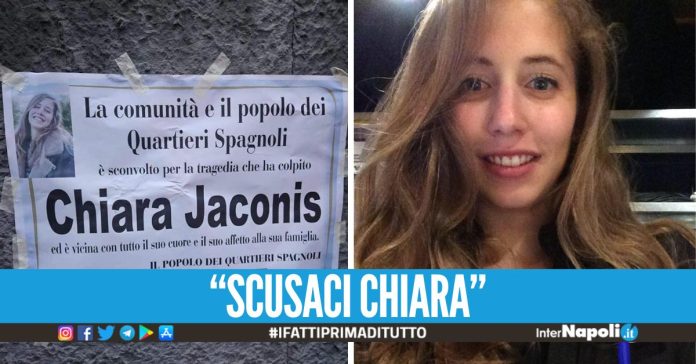 Per tutta la giornata di ieri è stata una processione silenziosa, scandita dal dolore di una tragedia che ha segnato tutti. La scritta “Scusaci Chiara” è sistemata dentro un foglio di plastica, perché vento e pioggia non possano cancellarla. Qualcuno ha preso una t shirt e l’ha dedicata alla donna “Chiara figlia di Napoli”. Appare anche un manifesto con scritto: “La comunità e il popolo dei Quartieri Spagnoli è sconvolto per la tragedia che ha colpito Chiara Jaconis ed è vicina con tutto il suo cuore e tutto il suo affetto alla sua famiglia. Il popolo dei Quartieri Spagnoli”.
