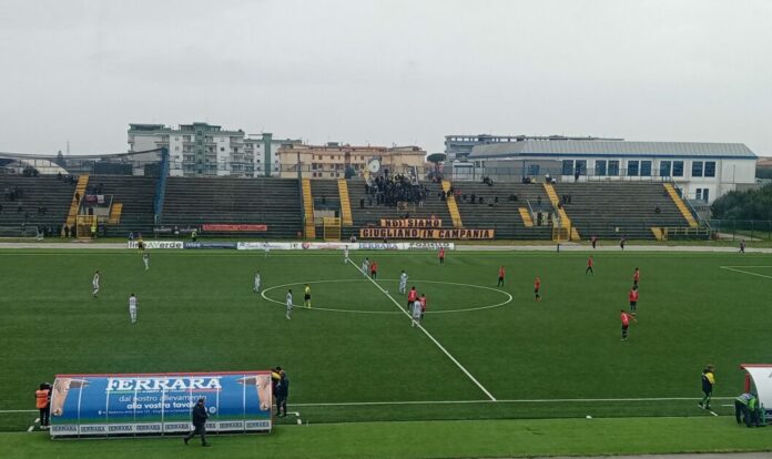 Giugliano – È qui la festa. Allo stadio “Alberto De Cristofaro”. Un tripudio sugli spalti, ornati dai colori della città. Il Giugliano ha vinto il derby con l’Afragolese con il più classico dei punteggi. E’ stata una partita abbastanza piacevole. Si è visto subito un Giugliano concentrato, determinato e voglioso di tornare alla vittoria, che si è trovata la strada spianata al sesto giro d’orologio. Quando il difensore Biasol, spintosi in avanti sul calcio d’angolo battuto da Cerone, di testa anticipa un nugolo di difensori rossoblu e mette dentro il gol dell’1-0. Il match resta equilibrato, con il Giugliano che mantiene il pallino del gioco e l’Afragolese che fatica ad innescare i propri attaccanti. La prima ed unica azione pericolosa per gli ospiti avviene alla mezz’ora quando Celiento elude la marcatura e serve Caso Naturale. L’ex gialloblu innesca il bomber Longo che da buona posizione tira alto. Sul finire è Cerone a sfiorare il raddoppio, ma il suo tiro termina di poco a lato.