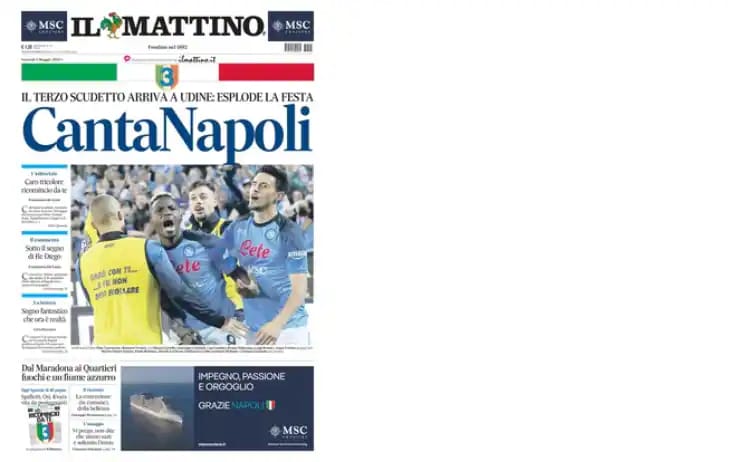 Il Napoli è campione d’Italia, la rassegna stampa dei principali quotidiani nazionali sul terzo scudetto azzurro