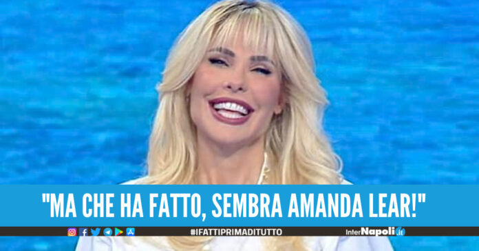 Al primo minuto del reality si accendono le luci in studio, sembra arrivare una biondissima Amanda Lear, ma invece è Ilary Blasi con un nuovo look.