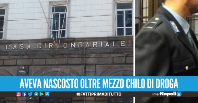 L’agente, Antonio Zuzolo, aveva nascosto 590 grammi di droga in un calzino: il sostituto procuratore di Napoli Fabrizio Vanorio ha disposto l’accompagnamento dell’ispettore arrestato nel carcere casertano di Santa Maria Capua Vetere.