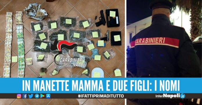 Durante la perquisizione sono stati rinvenuti e sequestrati 1.280 grammi di marijuana in diversi contenitori e buste sottovuoto e 105 grammi di hashish in diverse buste. Trovate poi anche 2 pistole a salve senza il tappo rosso e 103 colpi a salve calibro 8 e 9 millimetri. Droga, armi ma anche denaro. I carabinieri, infatti, hanno rinvenuto e sequestrato 50.910 euro ritenuti provento del reato. Madre e figli sono stati arrestati e trasferiti in carcere mentre il padre è stato denunciato.