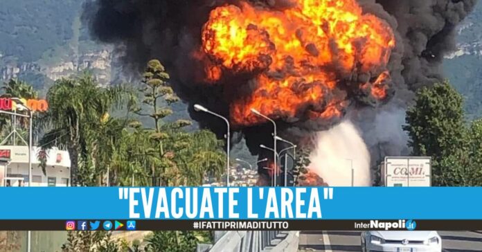 Un vasto incendio si è sviluppato all’interno di un’area parcheggio, inoltre le fiamme sono visibili anche nei comuni limitrofi della provincia di Napoli. Un’alta nube nera si è alzata dalla zona, visibile in diversi comuni circostanti. A scopo precauzionale sono stati evacuati alcuni palazzi circostanti a causa della presenza nel piazzale di diversi camion. Sul posto le forze dell’ordine.