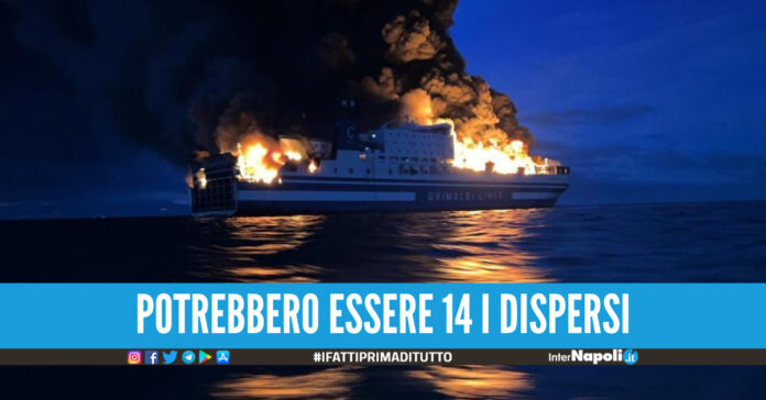 Dopo un controllo dei passeggeri e membri dell’equipaggio della nave in fiamme sbarcati a Corfù “mancherebbero all’appello 13 persone (e non 14 come comunicato in precedenza). Di queste, cinque sono state nel frattempo, rintracciate a bordo e sono subito scattate le operazioni di recupero ed evacuazione con ogni mezzo disponibile in loco”. Così scrive in una nota il Gruppo Grimaldi, armatore del traghetto Euroferry Olimpia.