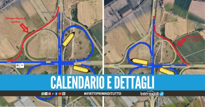 Chiusura della rampa di uscita verso la SS7bis, uscita Aversa/Villa Literno della S.P. ex SS 87 NC, località Orta di Atella/Caivano (in corrispondenza dell’ innesto SS7 bis)”.