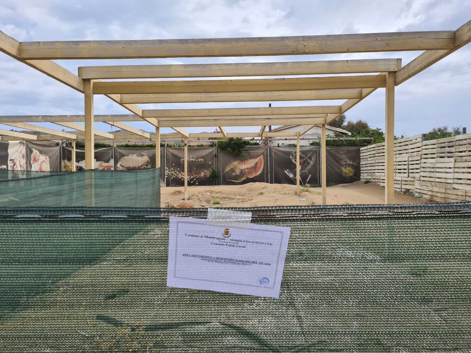 L’intera area risultava occupata da uno stabilimento balneare, privo di qualsivoglia titolo e/o autorizzazione amministrativa, ed il responsabile aveva posizionato 33 pedane in pvc nonché 121 ombrelloni con i relativi supporti fissi e tavolini.