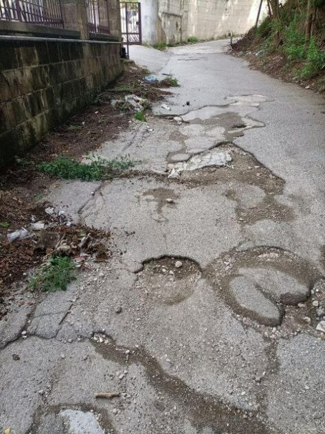 Le immagini, girate da una donna alla nostra redazione, sono chiarissime e sconcertanti: l’acqua piovana riempie le strade come torrenti in piena creando profonde buche nel manto stradale. Inoltre sull’asfalto sono trascinati rifiuti di ogni sorta, dai sacchetti dei spazzatura agli scarti di elettrodomestici.