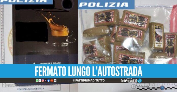Secondo la ricostruzione della polizia giudiziaria operante, all’esito di un servizio di osservazione e pedinamento, l’uomo è stato fermato in un’area di servizio dell’Autostrada A/2 del Mediterraneo e, insospettiti dal suo atteggiamento nervoso ed avendo fondato motivo che lo stesso potesse occultare sostanza stupefacente, gli agenti hanno proceduto alla perquisizione personale e dell’autovettura, all’interno della quale hanno rinvenuto: