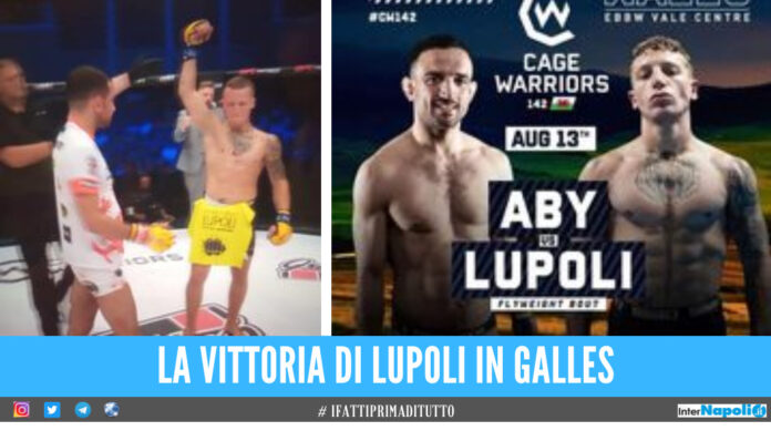 Nuovo trionfo per Michelangelo Lupoli, campione di Mma ed umanamente considerato uno dei migliori fighter italiani professionistici della sua categoria. Il 27enne di Crispano ha infatti vinto ieri sera il Cage Warriors 142 in Galles, uno degli eventi più importanti della Mma. Sconfitto il campione di casa, l’atleta Aaron Aby nella categoria dei pesi mosca. Il giovane fighter, al suo debutto all’estero e in Cage Warriors, ha dominato il match contro il più esperto Aby in un incontro che si è concluso sulla distanza, con verdetto dei giudici che hanno decretato la vittoria dell’atleta italiano, con una decisione unanime con punteggio (30-27, 29-28, 30-26). Quella di Lupoli è una vera e propria ‘favola’ costruita con passione, sacrificio e sudore.