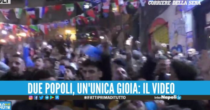 I napoletani e tifosi dell’Argentina stanno festeggiando insieme la vittoria della Coppa del Mondo a piazza Dante e nei Quartieri Spagnoli. Tanti supporter sudamericani stanno esprimendo la loro gioia per le strade di Napoli in un abbraccio in nome di Diego Armando Maradona. In molte zone è possibile ascoltare i fuochi d’artificio e vedere sventolare le bandiere bianco-azzurre.