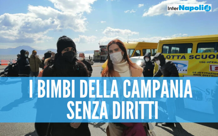 Di nuovo in piazza questa mattina i genitori dell’Associazione Scuole aperte della Campania. Una delegazione del movimento che da un anno si oppone all’opzione didattica a distanza utilizzata per la maggior parte del tempo in questo periodo di pandemia, si è unita ai lavoratori del comparto trasporto scolastico di Napoli sul Lungomare Caracciolo per un presidio statico. A supportare l’iniziativa in quest’occasione anche la conduttrice e soubrette Veronica Maya e la showgirl ed ex modella Maria Mazza nella schiera di chi spinge per la riapertura in presenza delle scuole. «Non è giusto nei confronti dei bambini e dei ragazzi questa sottrazione della socialità, sta mancando loro anche fare sport altra forma di aggregazione e salute per i bambini. Le famiglie sono sole, le scuole sono un luogo sicuro» – dice Veronica Maya mamma di due bimbi di 9 e 7 anni e di una bambina di 5 anni.