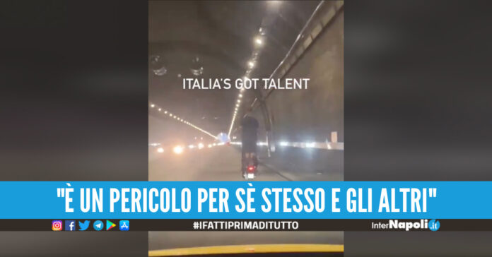 In ginocchio sul sellino mentre in precario equilibrio tiene lo scooter che conduce in posizione quasi verticale ed il fatto che guidi sprovvisto di casco può sembrare quasi un dettaglio. È così che un ragazzino ha percorso in motorino buona parte della Galleria Laziale di Napoli come mostrato in un video che un automobilista ha inviato al Consigliere Regionale di Europa Verde Francesco Emilio Borrelli.
