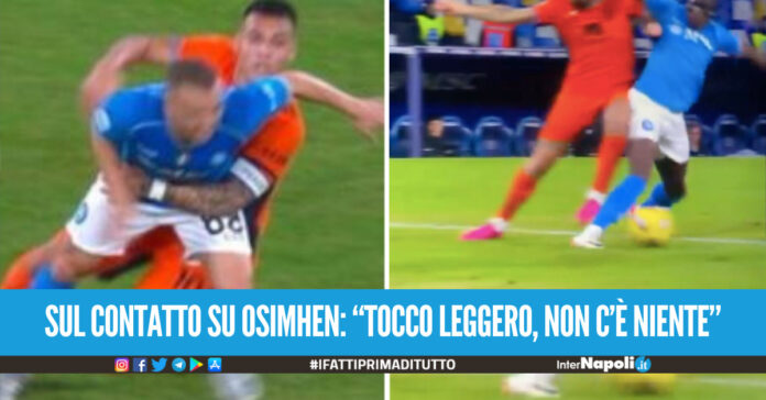 “Non c’è niente. Ero a un metro, non c’è proprio niente”. Così l’arbitro Davide Massa al capitano azzurro Di Lorenzo dopo il gol di Calhanoglu sul possibile fallo di Lautaro Martinez su Lobotka all’inizio dell’azione. “Partiamo dal possibile fallo – afferma il VAR Marini -. Fallo assolutamente no, ha preso il pallone e lo gioca chiaramente. Goal regolare”.