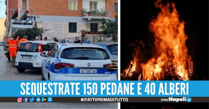 La Polizia Locale di Napoli ha attuato un’operazione per prevenire il tradizionale rito del ‘Fucarazzo’ o ‘Cippo di Sant’Antonio’, programmato per il 17 gennaio. Gli Agenti sono intervenuti a Fuorigrotta sequestrando 150 pedane in legno e 40 alberi di Natale senza radici destinati all’evento. L’operazione ha coinvolto 2 autopattuglie e 8 autocarri dell’azienda Asia.