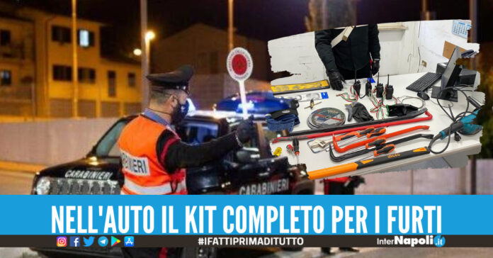 Nell’utilitaria, poi sequestrata, i carabinieri hanno trovato un kit completo per i furti: un flex, piedi di porco, guanti, cacciaviti, un enorme martello, targhe anche straniere risultate provento di furto e delle radiotrasmittenti. Il denunciato è ancora ricoverato.
