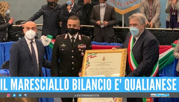 Stamattina si è svolta la cerimonia di conferimento della cittadinanza onoraria del Comune di Qualiano al Maresciallo Capo Pasquale Bilancio. La cerimonia è iniziata sulle note dell’Inno di Mameli. Poi, sono seguite le parole del presidente del Consiglio Salvatore Onofaro e del sindaco Raffaele De Leonardis. Il discorso del maresciallo Bilancio ha fatto raggiungere l’apice delle emozioni. Ha dedicato alla comunità qualianese parole toccanti ripercorrendo i suoi nove anni di servizio.