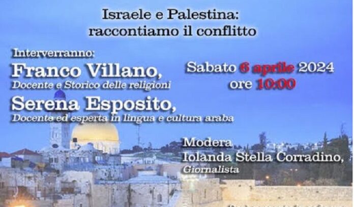 A dialogare con la cittadinanza saranno il noto professore universitario e storico delle religioni, Franco Villano- che affronterà le tappe che da un passato non molto lontano hanno portato al conflitto come oggi lo vediamo- e la professoressa Serena Esposito, esperta in lingua e cultura araba- che racconterà peraltro dell’esperienza vissuta nei mesi in cui è stata volontaria in Palestina. L’evento sarà moderato dalla giornalista Iolanda Stella Corradino.