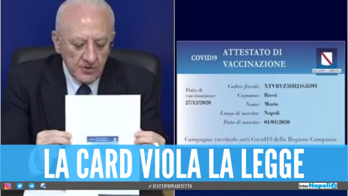 Card per i vaccinati in Campania, De Luca: “Stamperemo altre 4 milioni di tessere, a cosa serviranno”