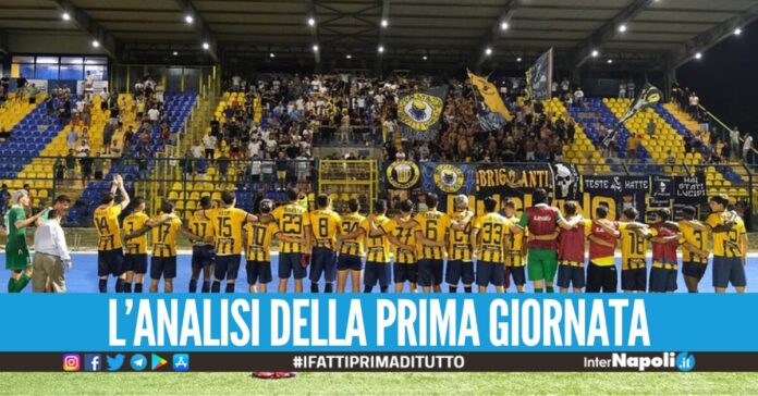 Non sono mancate le sorprese nella 1^ giornata di campionato. La più clamorosa arriva da Picerno dove la corazzata Avellino subisce una pesante sconfitta. Gli irpini si sono dimostrati troppo fragili a fronte di una squadra ben organizzata. Anche il Catania, compagine inserita nel gruppo delle favorite per la vittoria finale, non riesce ad incamerare i tre punti nella sfida con il Sorrento. Buona prestazione dei campani che nella gara di esordio conquistano il primo punto della stagione. Il Giugliano si impone di misura sul Taranto grazie a un rigore trasformato dall’ex rossoblu Romano. Gara combattuta con i pugliesi che sfiorano più volte il pareggio, nella ripresa i tigrotti possono raddoppiare ma il portiere Del Favero si oppone con bravura alle conclusioni degli avanti gialloblu. Un Cerignola da applausi sbanca il campo della Juventus Next Gen per 4-3 con la doppietta di Cuppone e i gol di Salvemini e Gagliano. Una buona Cavese deve arrendersi al Benevento che rimonta l’iniziale svantaggio e conquista i primi tre punti del suo campionato. La squadra ospite gioca con coraggio e personalità, sblocca il risultato, sfiora il raddoppio ma alla fine esce sconfitta. La Casertana aggancia il Latina e conquista un punto al fotofinish, la squadra rossoblu trova il pareggio in pieno recupero e dimostra grande carattere. All’iniziale vantaggio di Di Livio su calcio di rigore risponde Gatti al 98’, il confronto allo stadio Francioni termina 1-1. Colpo esterno del Monopoli che con i gol di Vazquez e Pace espugna il campo della Turris che non ha potuto schierare i nuovi acquisti per la mancata fidejussione. Non era iniziata bene la serata per il Messina che è riuscito a ribaltare la sfida col Potenza ma nel finale arriva la doccia fredda con il pari degli ospiti. Identico risultato (2-2) ed epilogo per Foggia-Trapani. Due volte in vantaggio i padroni di casa due volte vengono raggiunti nei minuti di recupero del primo e secondo tempo. Buona la prima per il Crotone che batte con il più classico dei punteggi la matricola pugliese dell’Altamura. Ai rossoblu basta il primo tempo, ha aperto Vitale e poi il sigillo di Tumminello.