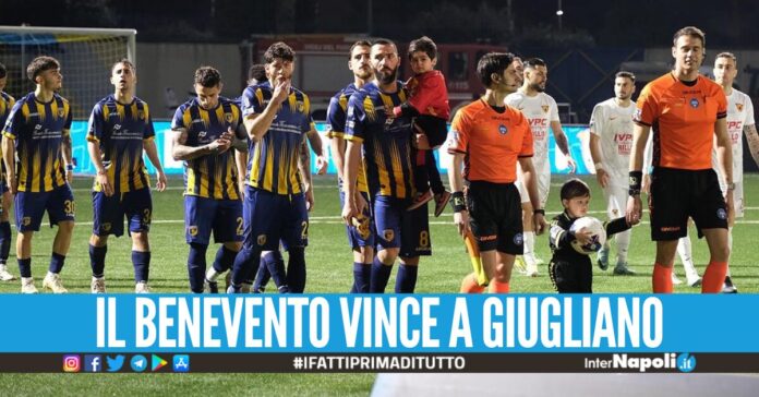 Il Benevento batte di misura il Giugliano. Meglio i tigrotti nella prima parte della gara che trovano il gol del momentaneo vantaggio con Balde. Decisamente più in palla i sanniti in avvio della seconda frazione di gioco che nel giro di tre minuti operano la remuntade con Lanini e Ciciretti su calcio di rigore. Vittoria importante per la compagine beneventana che guadagna tre punti sulla capolista sconfitta a Foggia, mentre l’undici gialloblu, dopo la sconfitta, rimane in ottava posizione.