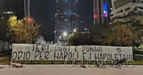 “Ieri, oggi e domani: odio per Napoli e i napoletani”, recita il primo. Mentre nel secondo si legge qualcosa di ancora più offensivo: “Curva A: la vostra razza d’infami, la vergogna dell’umanità”.