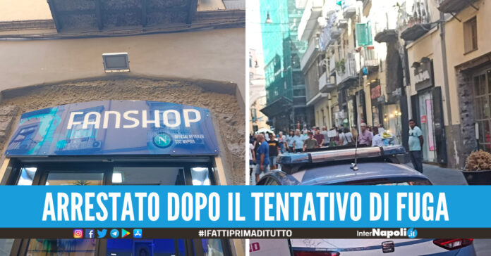 I gestori e i commessi dello store si sono accorti che il ladro stesse guadagnando l’uscita per fuggire verso via Chiaia con il “trofeo”. L’uomo è stato così raggiunto e bloccato pochi metri più avanti lo store dai Falchi, allertati dagli stessi gestori del Fanshop e da alcuni passanti e successivamente arrestato da una pattuglia della Polizia di Stato della Questura di Napoli giunta in via Chiaia.
