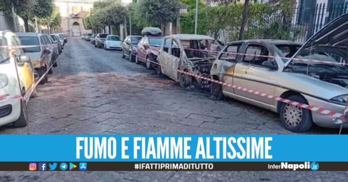 Auto in fiamme, altre quattro vetture coinvolte: paura e forte tensione nella zona di via Armando Diaz, non distante dal centro di Torre del Greco.