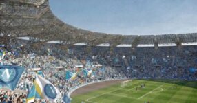 Tre anelli, niente pista d’atletica e tribune a ridosso del campo: le immagini del nuovo Maradona