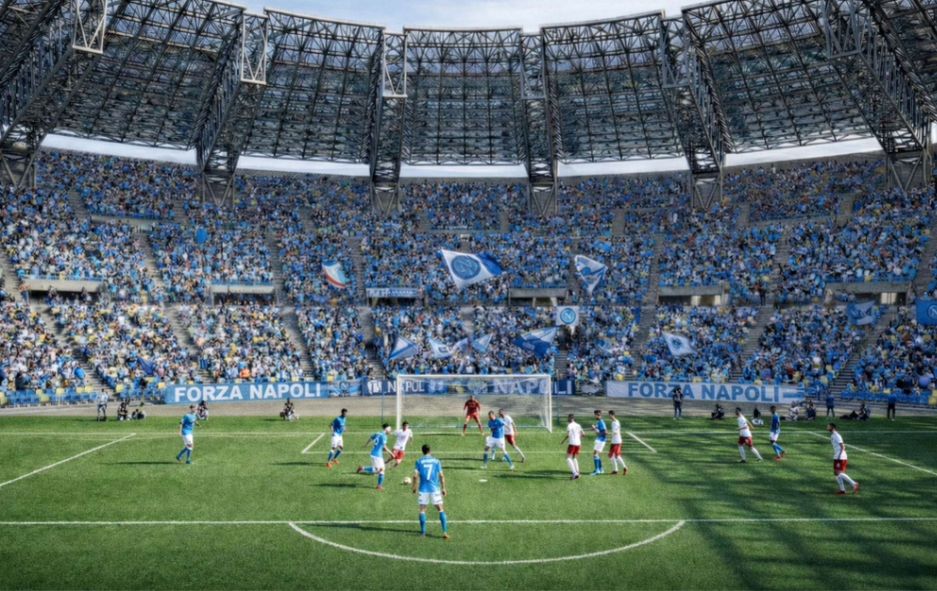 Tre anelli, niente pista d’atletica e tribune a ridosso del campo: le immagini del nuovo Maradona