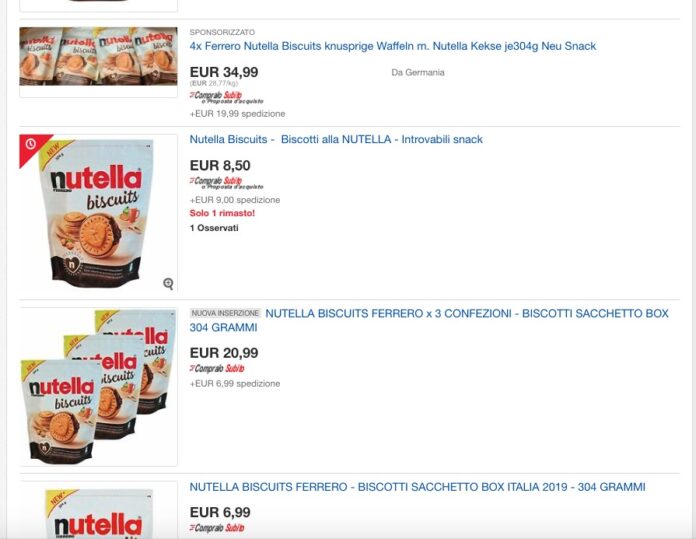 Sui siti di e-commerce infatti, i Nutella Biscuits si trovano ma a prezzo parecchio maggiorato. Invece dei 2,99 euro, prezzo consigliato dalla Ferrero, in rete si trovano a prezzi a volte triplicati.