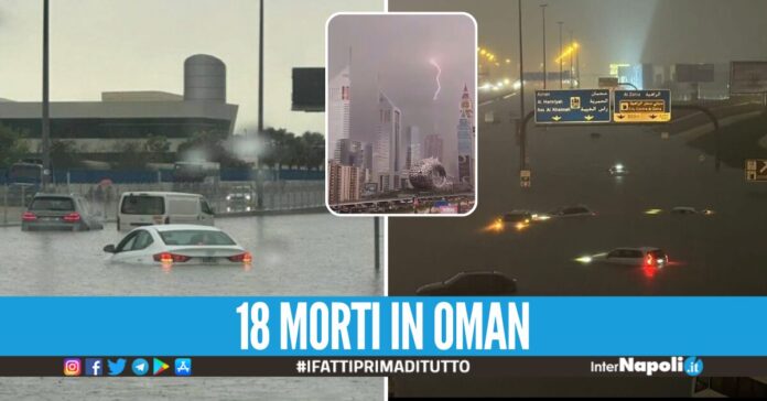 “Un evento meteorologico storico”, così è stata definita l’ondata di maltempo eccezionale che ha investito la città di Dubai, negli Emirati Arabi Uniti. Oltre 140 millilitri di acqua scaricati dal cielo in 24 ore laddove la media è di 94.7 in un anno. Una pioggia torrenziale ha allagato a Dubai strade, case e centri commerciali e ha interrotto le operazioni all’aeroporto internazionale, mentre il maltempo si è ora abbattuto sulla regione del Golfo, dopo aver provocato almeno 18 morti in Oman.