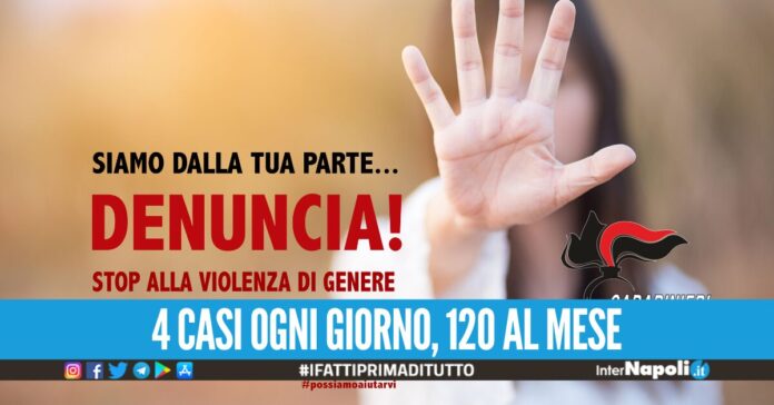 In media si sono verificati 4 casi ogni giorno, 120 al mese. Sono dati che destano preoccupazione quelli resi dal comando provinciale dei carabinieri di Napoli, frutto del contrasto al triste fenomeno della violenza di genere che ha riguardato quattro procure: Napoli, Torre Annunziata, Napoli Nord e Nola.